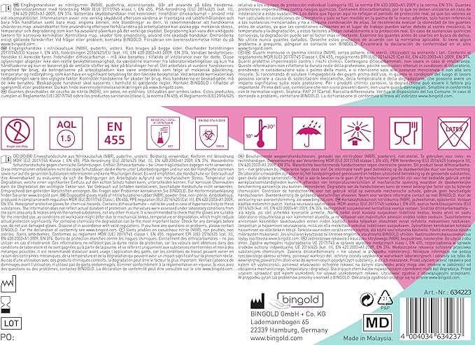 Bingold nitril handschoenen zijn voor eenmalig gebruik, latex- en poedervrij, onsteriel en passend voor zowel linker- als rechterhand.